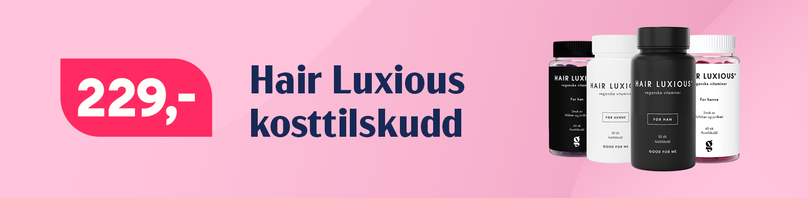 Hair Luxious kosttilskudd – Et vegansk tilskudd med 2500 μg biotin, samt niacin, riboflavin, sink, selen og kobber. Næringsstoffene bidrar til å opprettholde normalt hår og hud, og gir næring til hodebunnen innenfra.